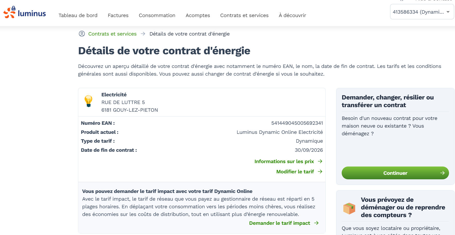 Une fois que SMR3 est activé sur votre compteur communicant et que le tarif dynamique est en place, vous pouvez vous inscrire au tarif Impact directement via l’application My Luminus :