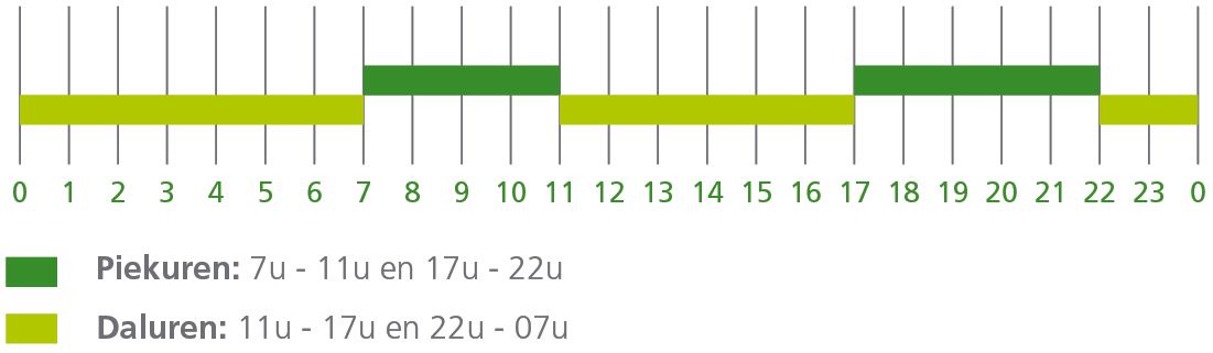 Het tweevoudig uurtarief (tarif bihoraire) vervangt het klassieke dag- en nachttarief in Wallonië. In plaats van dag en nacht spreken we voortaan over piekuren (heures pleines) en daluren (heures creuses). Deze nieuwe regeling geldt zowel in de week als in het weekend. Het betekent ook dat het voormalige weekendtarief verdwijnt.